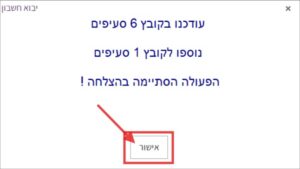 10. נפתחת הודעה על מספר הסעיפים שעודכנו בעקבות יבוא החשבון, ללחוץ על “אישור”: