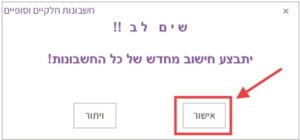 11. מופיעה הודעה על כך שהחשבונות יחושבו מחדש, בעקבות עדכון נתוני הביצוע בחשבון, יש ללחוץ על “אישור”: