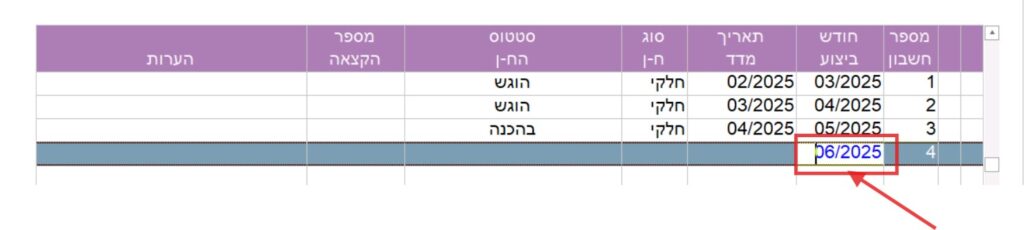 4.1. יש ללחוץ על המקש Enter במקלדת כדי להעביר את הסמן לשדה “חודש ביצוע”.