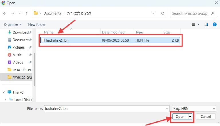 כדי לייבא את קובץ החשבון (עם סיומת hbn) יש לפעול לפי ההנחיות הבאות: