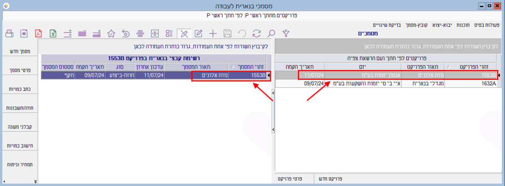 3. בעקבות הפעולה המסמך עבר לפרויקט הנבחר: