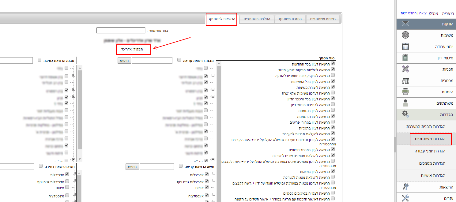 קישור ללשונית הרשאות התפקיד ממסך הרשאות המשתתף