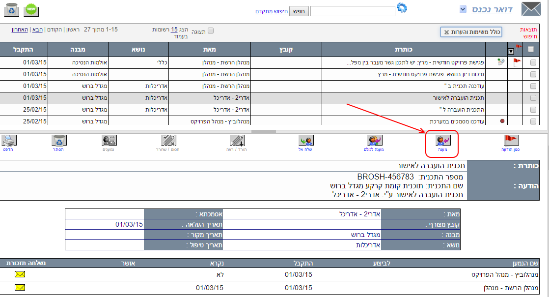 בגוף ההודעה בחלק התחתון של המסך מוצגים כפתורי פעולה. יש ללחוץ על הכפתור “מענה”:
