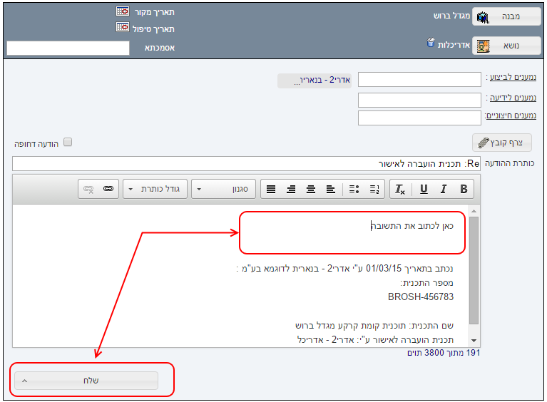 בחלון שנפתח לכתוב את התשובה, ולסיום ללחוץ על “שלח”: