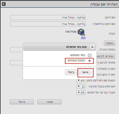 3. בחלונית שנפתחת מסמנים את האפשרות “הזמנת משתתף” ולוחצים על “אישור”: