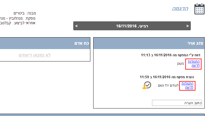 אם אחד הצדדים מתנגד לדיווח או להערה של הצד השני הוא יכול לשלוח התנגדות. כדי לעשות זאת, יש ללחוץ על המילים “התנגדות לדיווח” המופיעות לצד הדיווח או ההערה: