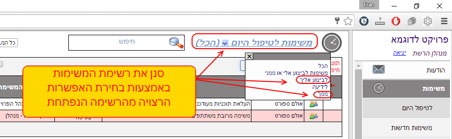 כדי לעיין ברשימת המשימות יש לבצע את הפעולות הבאות: