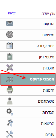 1. בתפריט הראשי ללחוץ על “מסמכי פרויקט“: