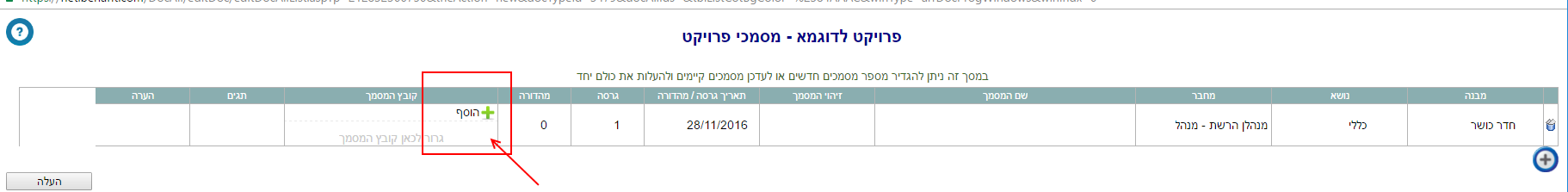 כדי להעלות מסמך לפרויקט יש לבצע את הפעולות הבאות: