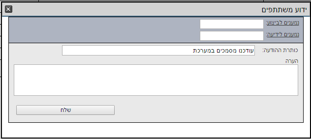 לבחור את המשתתפים שאליהם רוצים לשלוח את ההודעה על המסמך שהועלה/עודכן, לכתוב הערה אם יש צורך, וללחוץ על “שלח“: