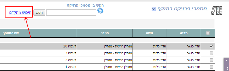 9. כדי לאתר מסמך יש ללחוץ על הקישור “חיפוש מתקדם” ברשימת המסמכים: