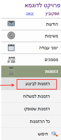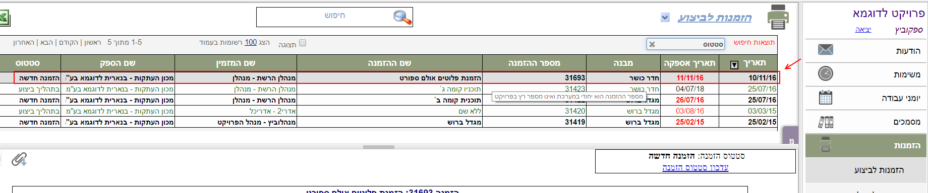 2. ברשימת ההזמנות ללחוץ על ההזמנה החדשה: